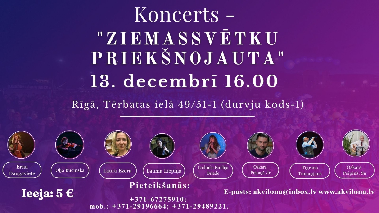 Pasākuma norises adrese: Dziedniecības centrs AKVILONA, Tērbatas 49/51-1 (d.kods-1atslēga3188), Rīga.