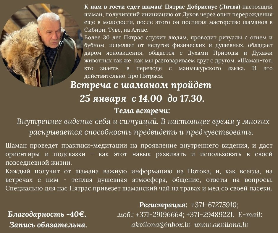 или по электронной почте: akvilona@inbox.lv